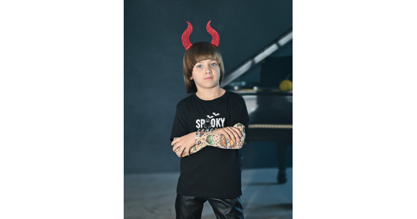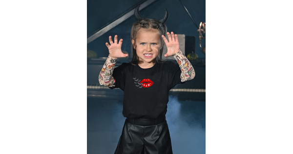 Особливість моделі: футболка вільного крою, з рукавами виконаними з м'якою стрейч сітки з малюнком імітує тату, низ рукава не оброблений. У розмірах 68 - 92 на плечі є застібка на..