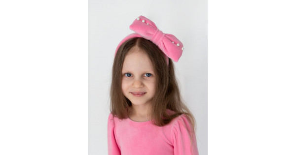 Особливість моделі: Широкий велюровий обруч з великим бантом, розшитим вручну перловими намистинами.