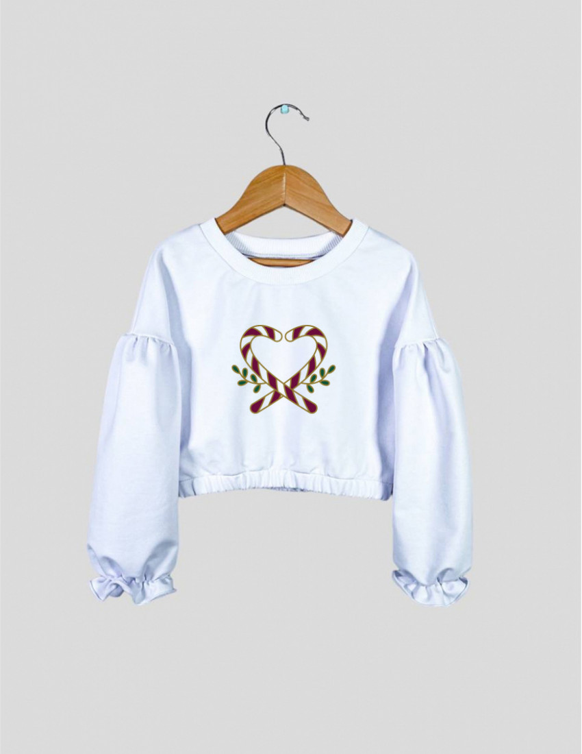 Особливість моделі: вкорочений джемпер зі спушеною проймою, пишним рукавом та збіркою з рюшем по низу і рукавах