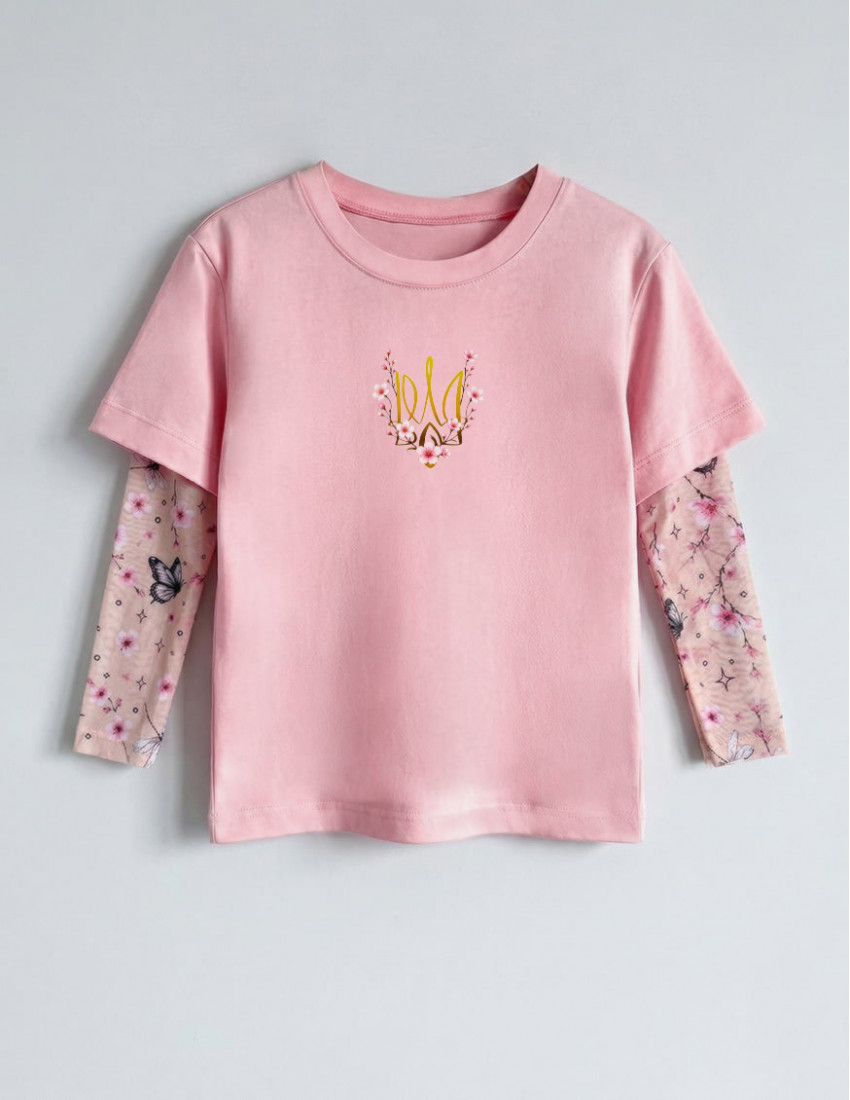Футболка Дрейк з тату-рукавами Сакура Тризуб з рожевими квітами