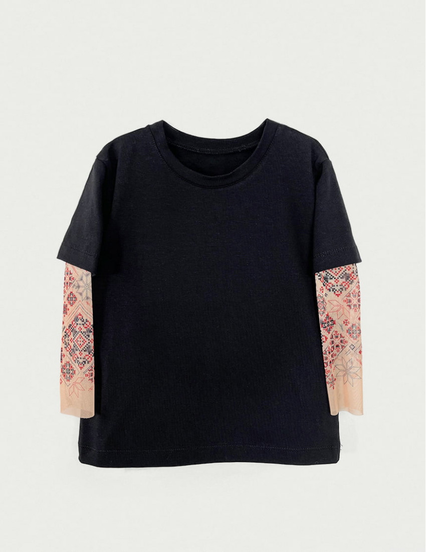 Особливість моделі: вільного крою, з рукавами виконаними з м'якою стрейч сітки з малюнком імітує тату, низ рукава не оброблений.