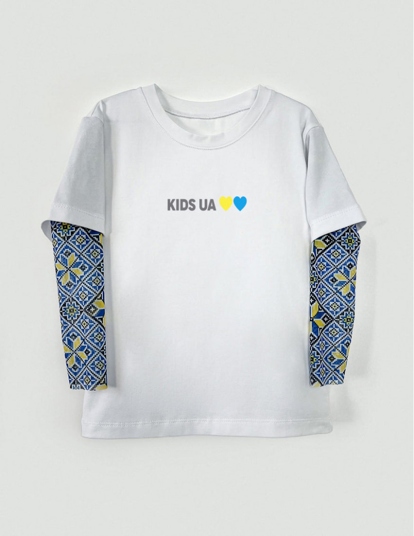 Футболка з тату-рукавами Дрейк Вишиванка біла Kids UA