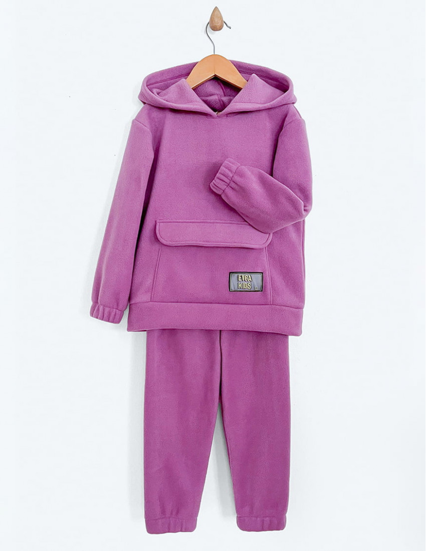 Особливість моделі: теплий флісовій костюм, що складається з толстовки з капюшоном та брюк. Має накладну кишеню на толстовці та манжети на резинці