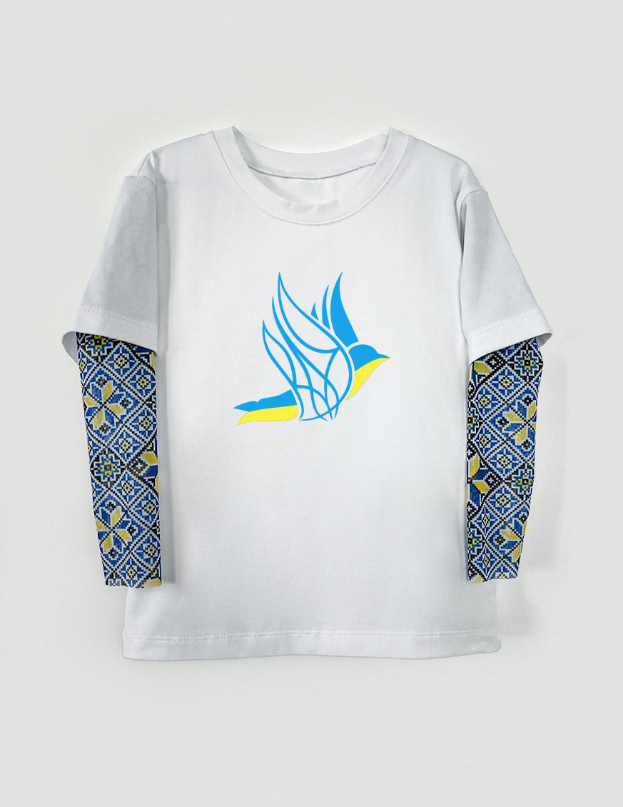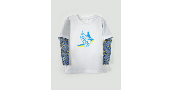 Особливість моделі: вільного крою, з рукавами виконаними з м'якою стрейч сітки з малюнком імітує тату, низ рукава не оброблений. У розмірах 68 - 92 на плечі є застібка на кнопках