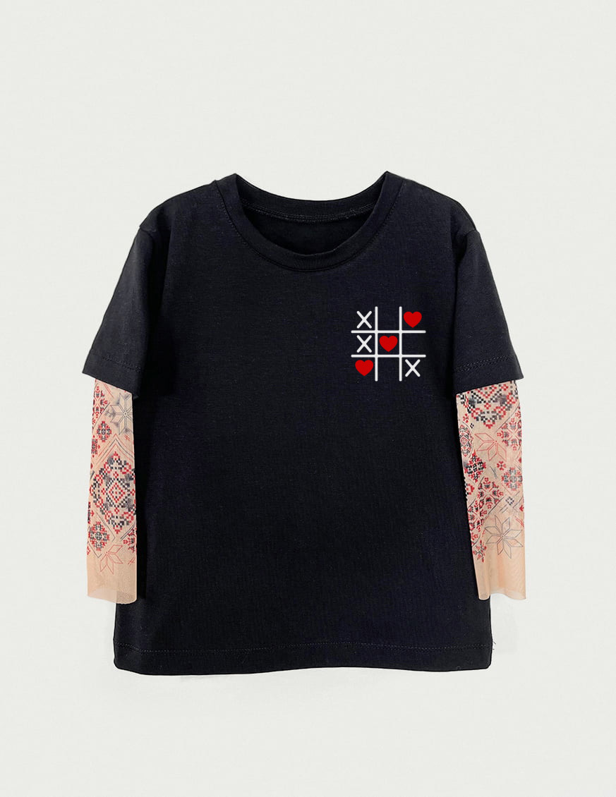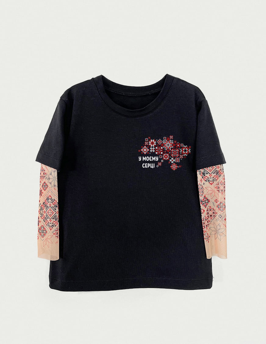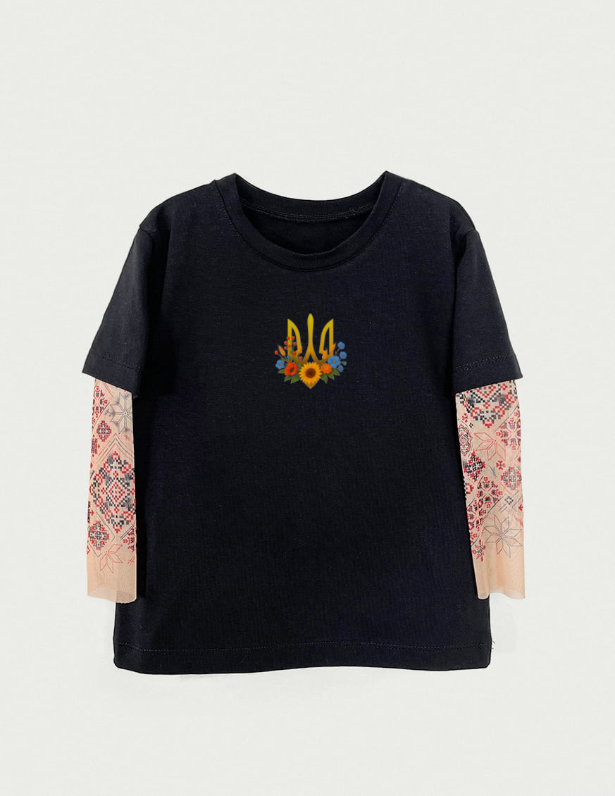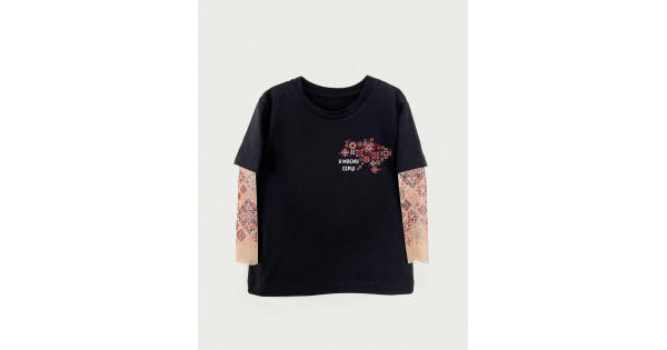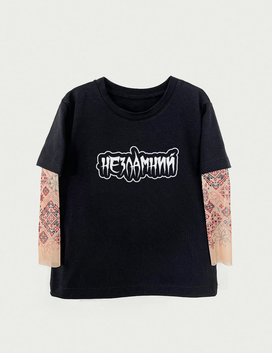 Особливість моделі: футболка вільного крою, з рукавами виконаними з м'якою стрейч сітки з малюнком імітує тату, низ рукава не оброблений. У розмірах 68 - 92 на плечі є застібка на..