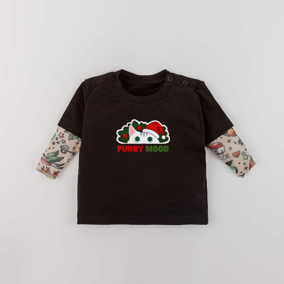Особливість моделі: футболка вільного крою, з рукавами виконаними з м'якою стрейч сітки з малюнком імітує тату, низ рукава не оброблений. У розмірах 68 - 92 на плечі є застібка на..